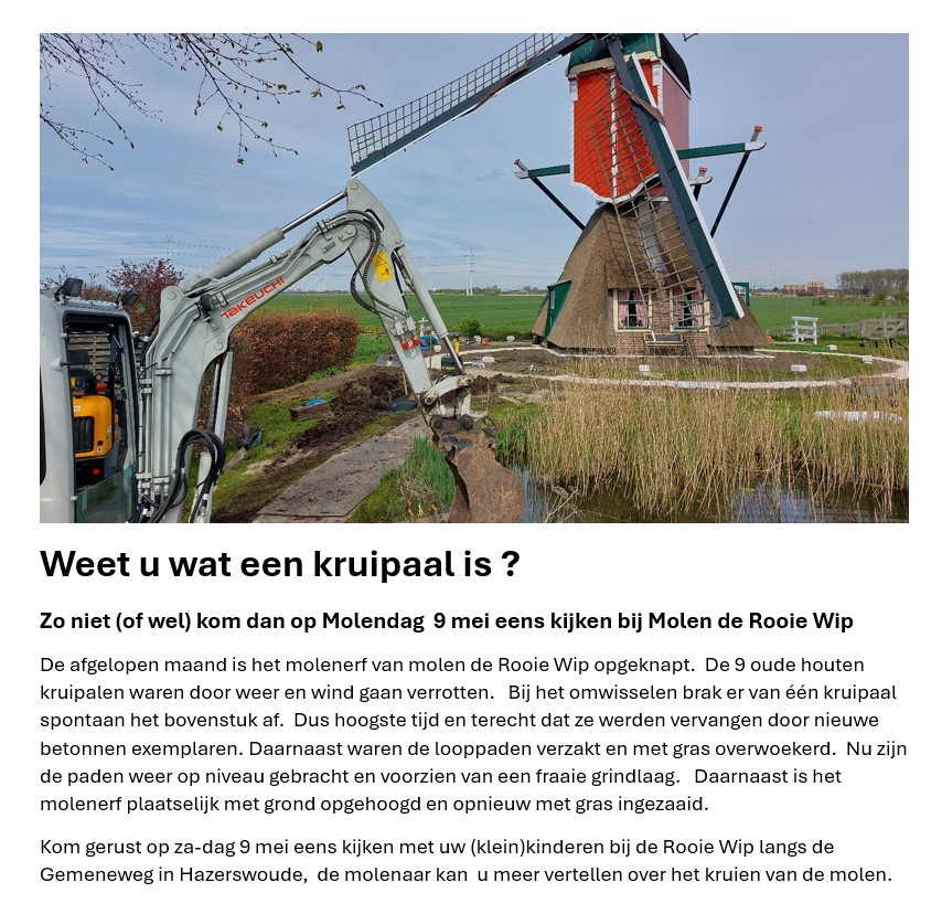 Weet U wat een kruipaal is? Molendag 9 mei